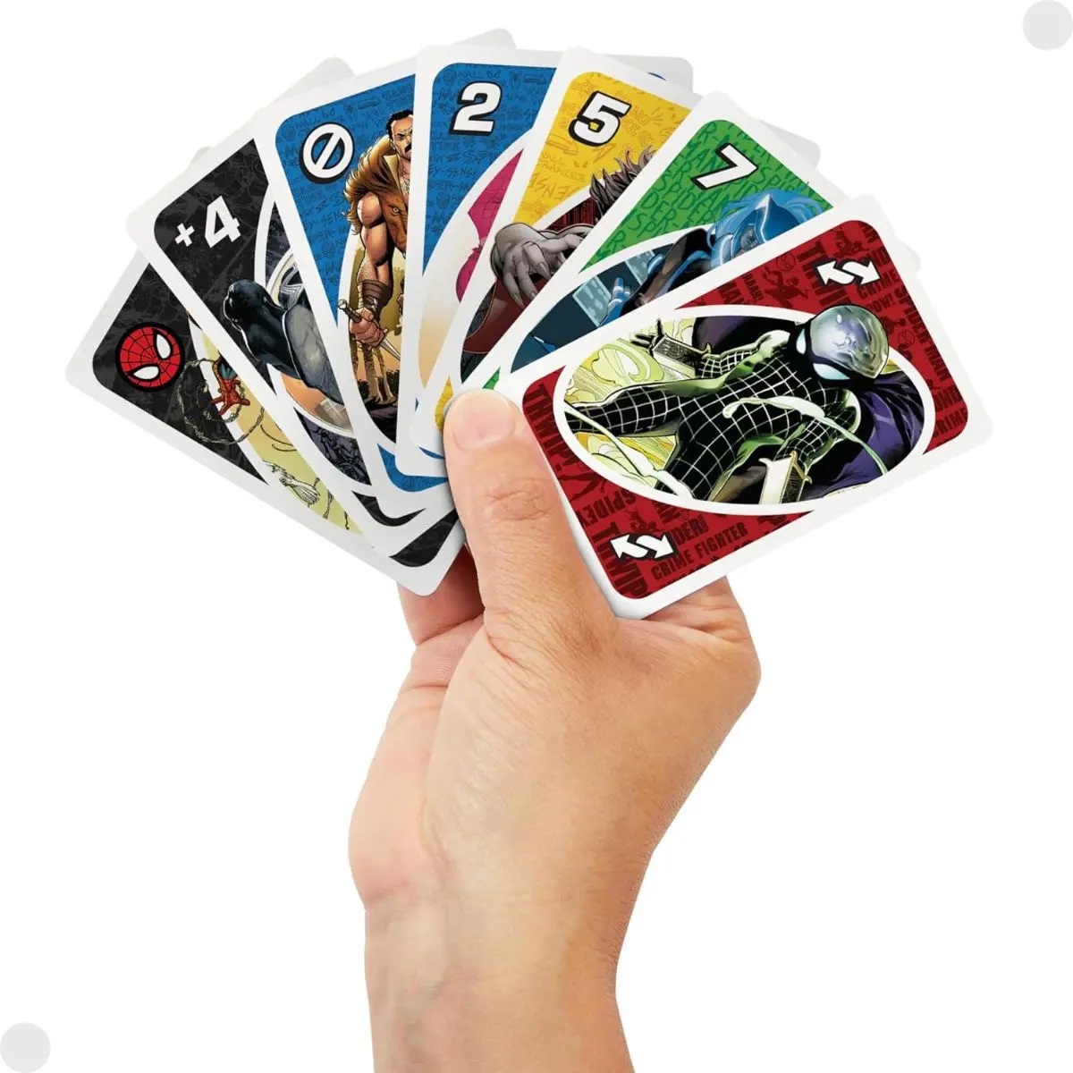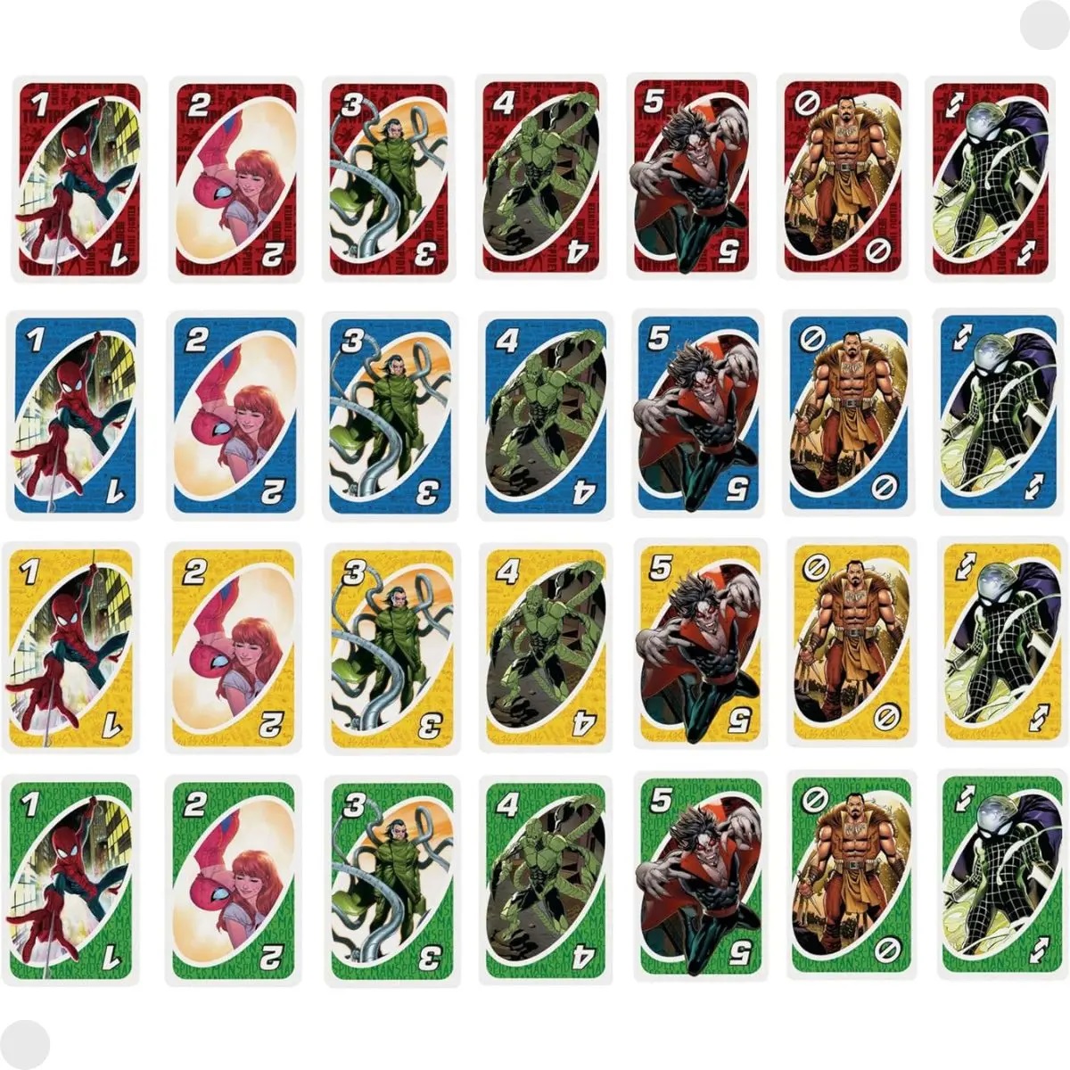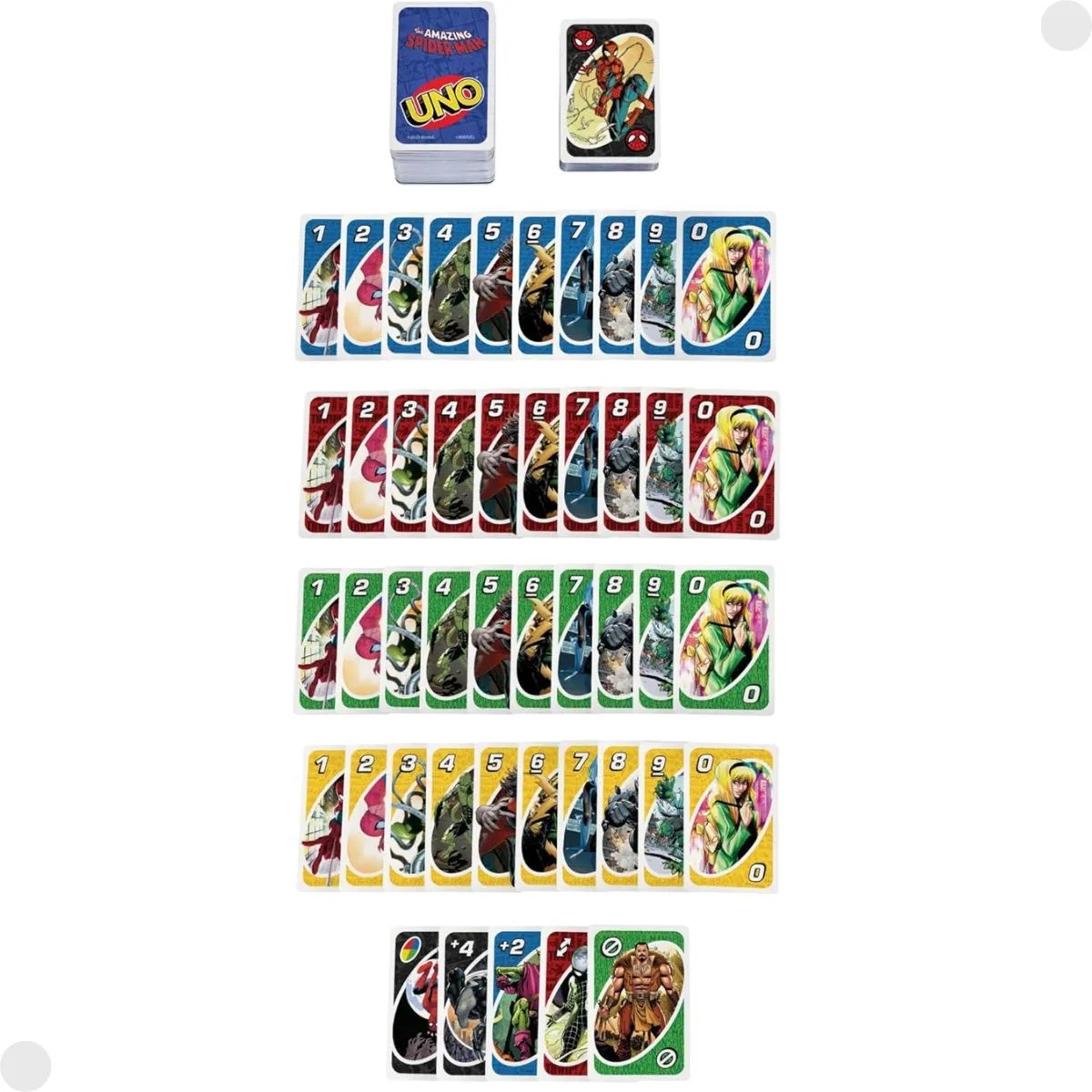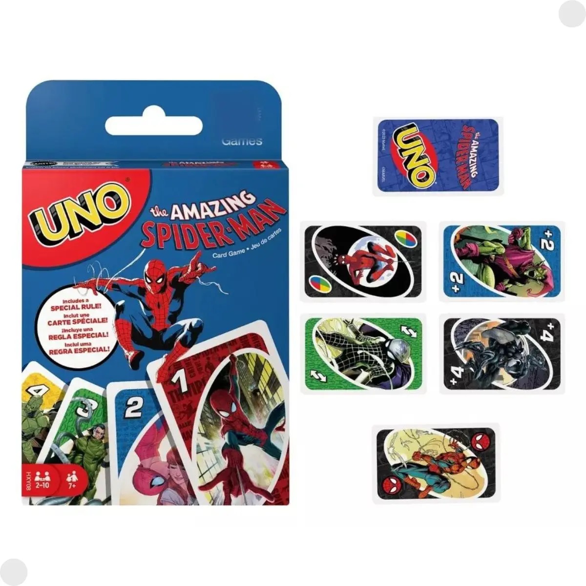 O clássico jogo de cartas que todo mundo ama agora ganha o reforço do herói mais querido da Marvel! O UNO The Amazing Spider-Man traz toda a adrenalina das páginas dos quadrinhos para as suas partidas. Com gráficos incríveis inspirados em cenas e personagens icônicos, este baralho transforma a dinâmica tradicional em uma verdadeira batalha pela justiça (e pela vitória!).