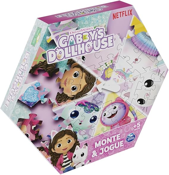 Prepare-se para entrar na casa mais charmosa e divertida do mundo! O Jogo Monte e Jogue da Gabby’s Dollhouse não é apenas um passatempo, é uma aventura completa. Primeiro, a criança se diverte montando um lindo cenário da série; depois, esse cenário se transforma em um tabuleiro interativo para um jogo empolgante com os personagens favoritos: Pandy Gato, Sereiata, DJ Risonho e muito mais