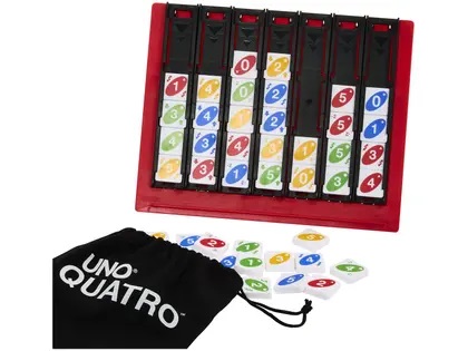 O UNO Quatro da Mattel eleva a experiência dos jogos de tabuleiro ao fundir a estratégia clássica do UNO com o desafio icônico de conectar quatro elementos em linha. Nesta versão inovadora, os jogadores devem deslizar suas peças nas bandejas laterais com precisão, buscando combinar cores ou números para formar sequências vitoriosas. A dinâmica é constantemente transformada por peças de ação especiais que permitem manobras ousadas, como reduzir as opções dos adversários ou até alterar a posição das bandejas, garantindo que cada rodada seja repleta de reviravoltas e adrenalina.