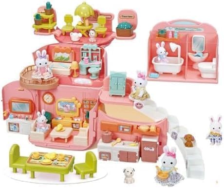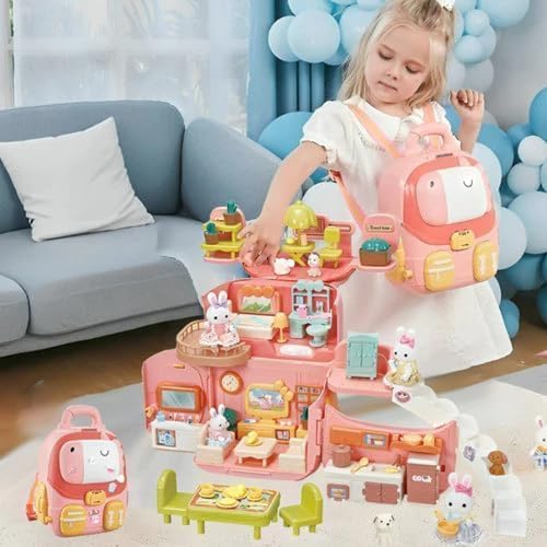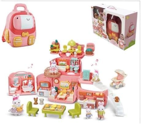 Conteúdo: 01 Mochila transformável, figuras de coelhinhos, móveis em miniatura e acessórios decorativos.